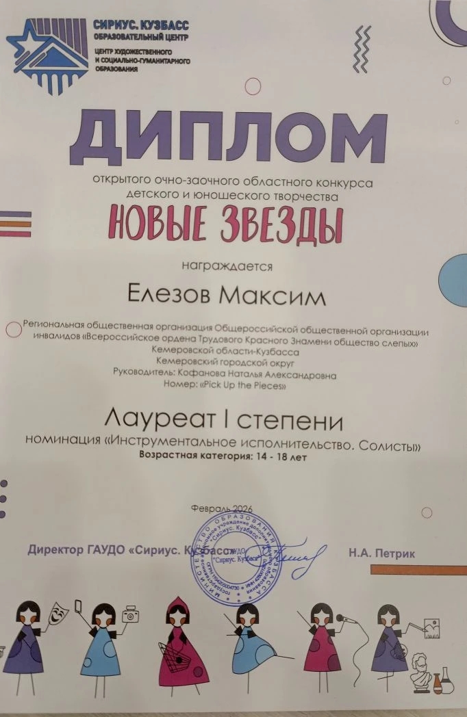 С 12 по 15 февраля 2026 года, в Центре художественного и социально-гуманитарного образования ГАУДО «Сириус. Кузбасс» по адресу г. Кемерово, ул. Патриотов, д.9 состоялся открытый очно-заочный областной конкурс детского и юношеского творчества «Новые звёзды».
