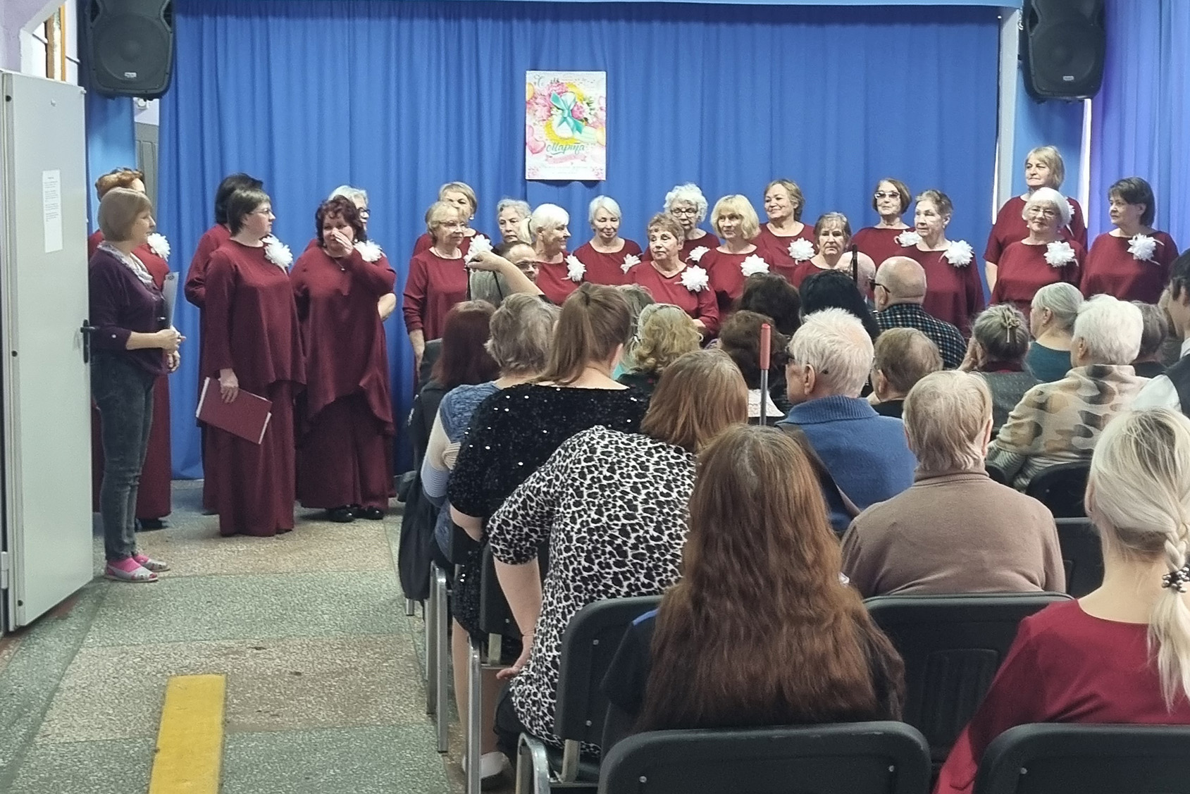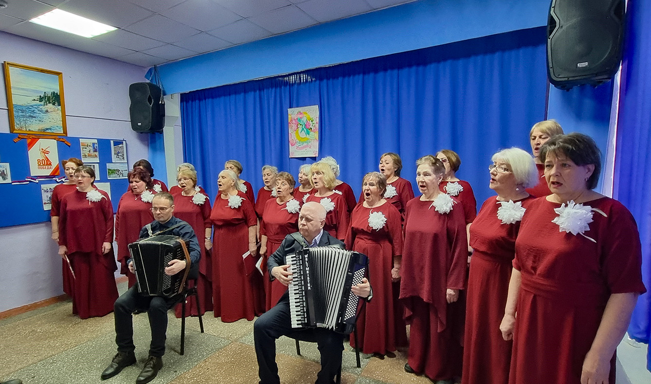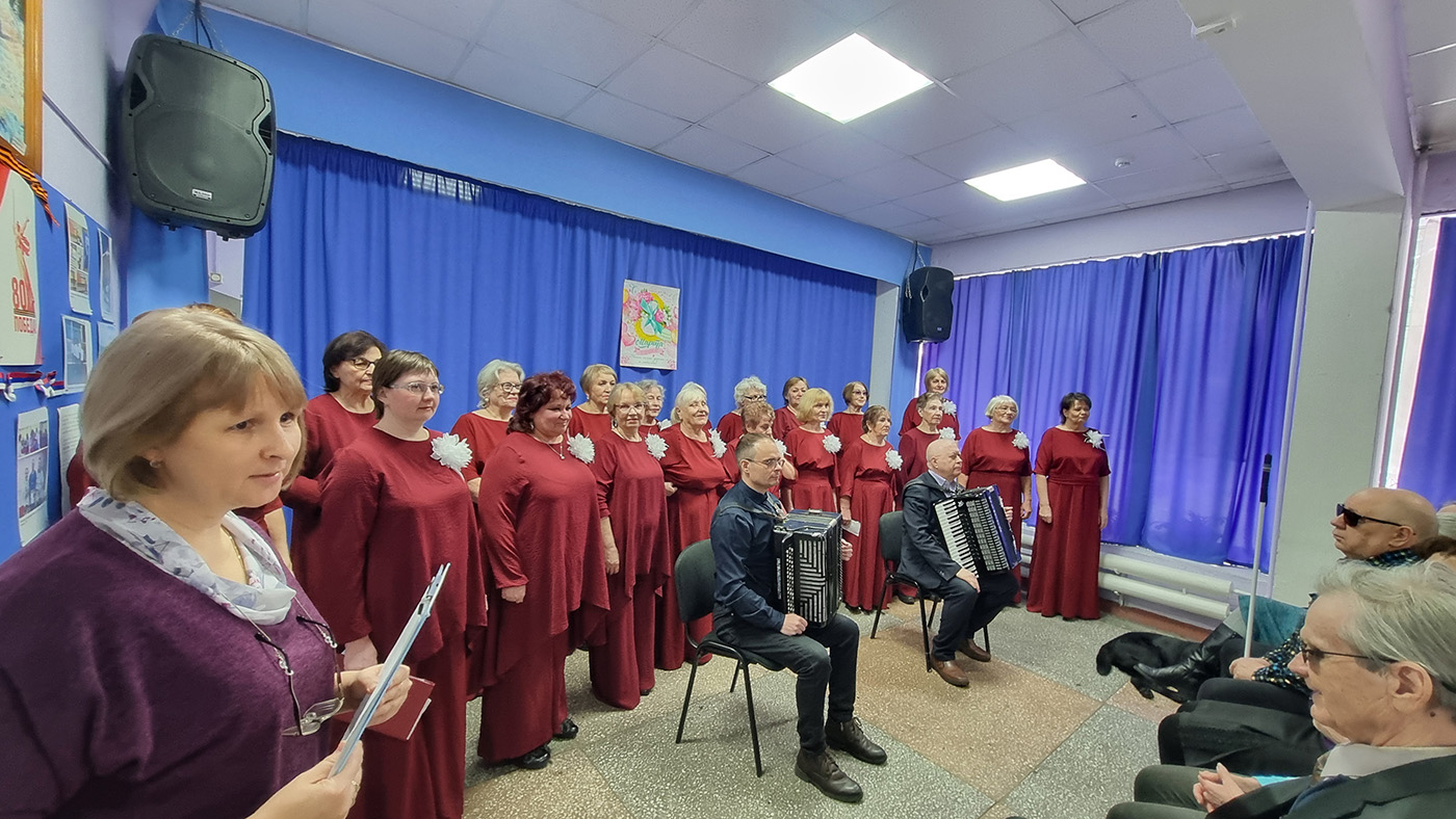 Ярким событием мероприятия стало выступление народного самодеятельного коллектива — хора ветеранов «Вдохновение» из ДК «Строитель». Под руководством члена Новокузнецкой МО ВОС, отличника народного просвещения Бородкина Анатолия Александровича и аккомпаниатора Горбаткова Виталия Ивановича артисты создали особую атмосферу тепла и душевности, погрузив зрителей в мир любимых песен и искренних эмоций.