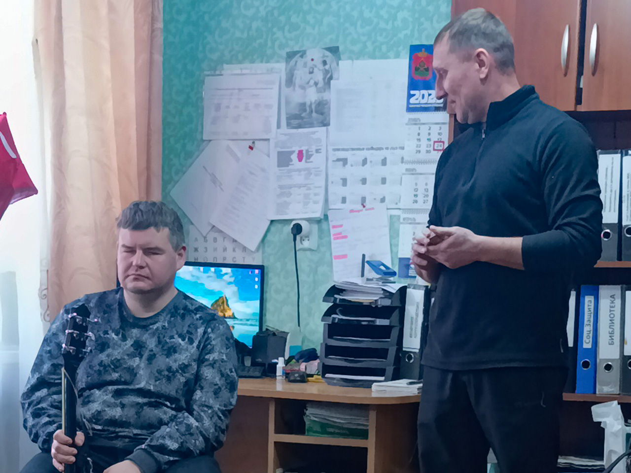 Артем Александрович полностью не зрячий, рассказал историю своей жизни, вместе мы послушали историю библии, молились, пели песни, много историй из жизни рассказывали и члены ВОС.