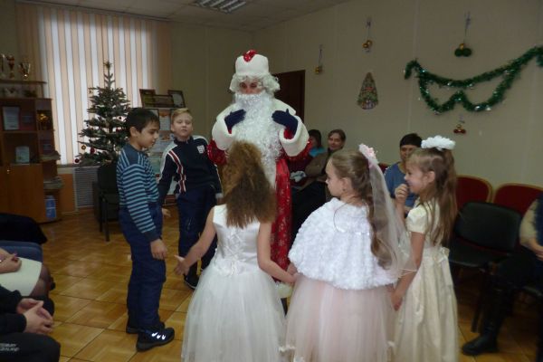 Снегурочка поиграла с ребятишками в новогоднюю динамичную игру «Снеговик», задорно танцевал с девочками и мальчиками и Дедушка Мороз. С огромным удовольствием дети играли в подвижные игры: «Снежки», «Заморожу», «Веселые лошадки», «Кто быстрее». Девочки в костюмах снежинок танцевали со Снегурочкой. После танцев дети рассказывали стихи и пели песни Деду Морозу, а потом все вместе взрослые и дети водили хоровод возле Ёлочки с традиционной песней «В лесу родилась ёлочка».