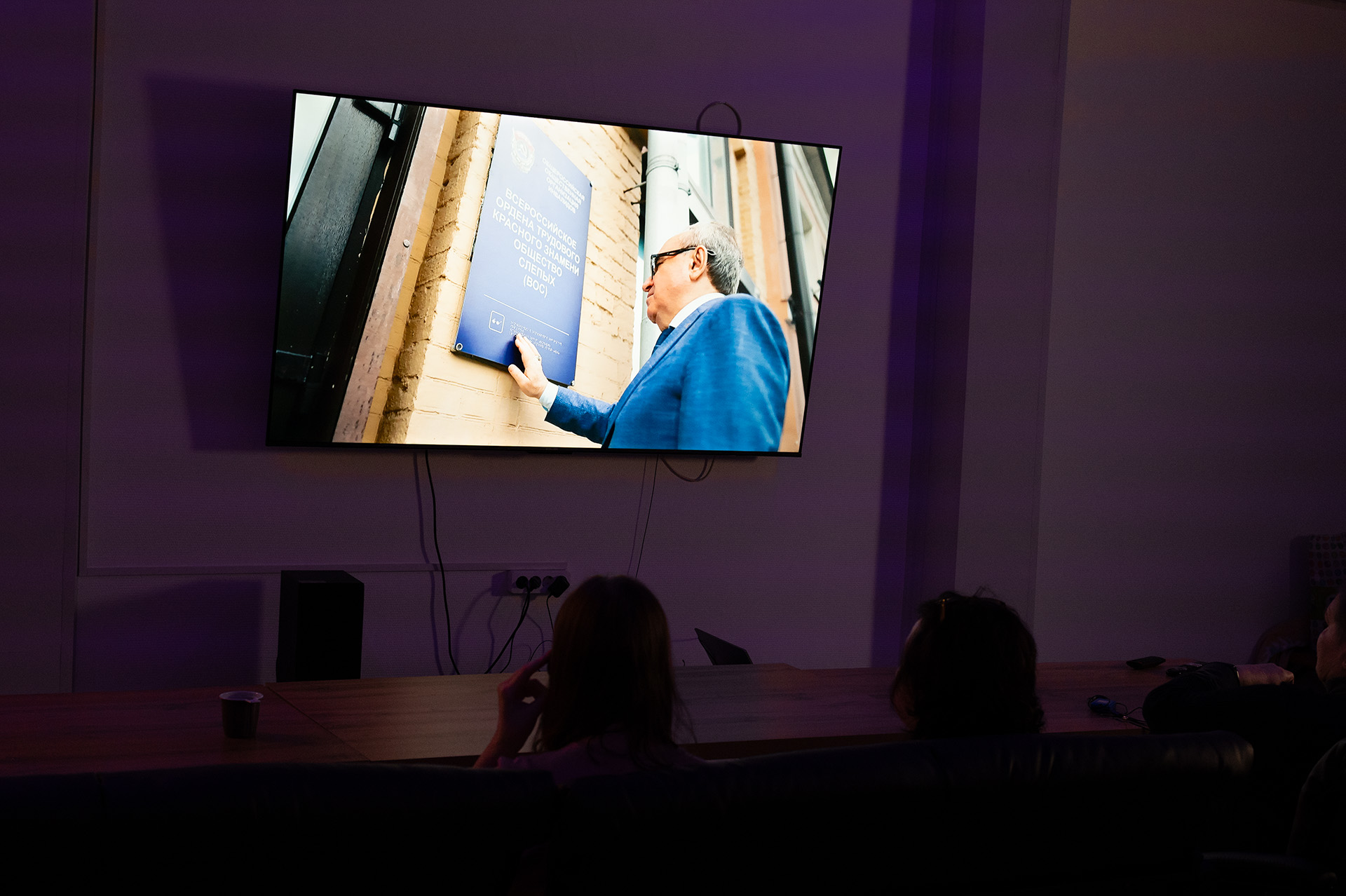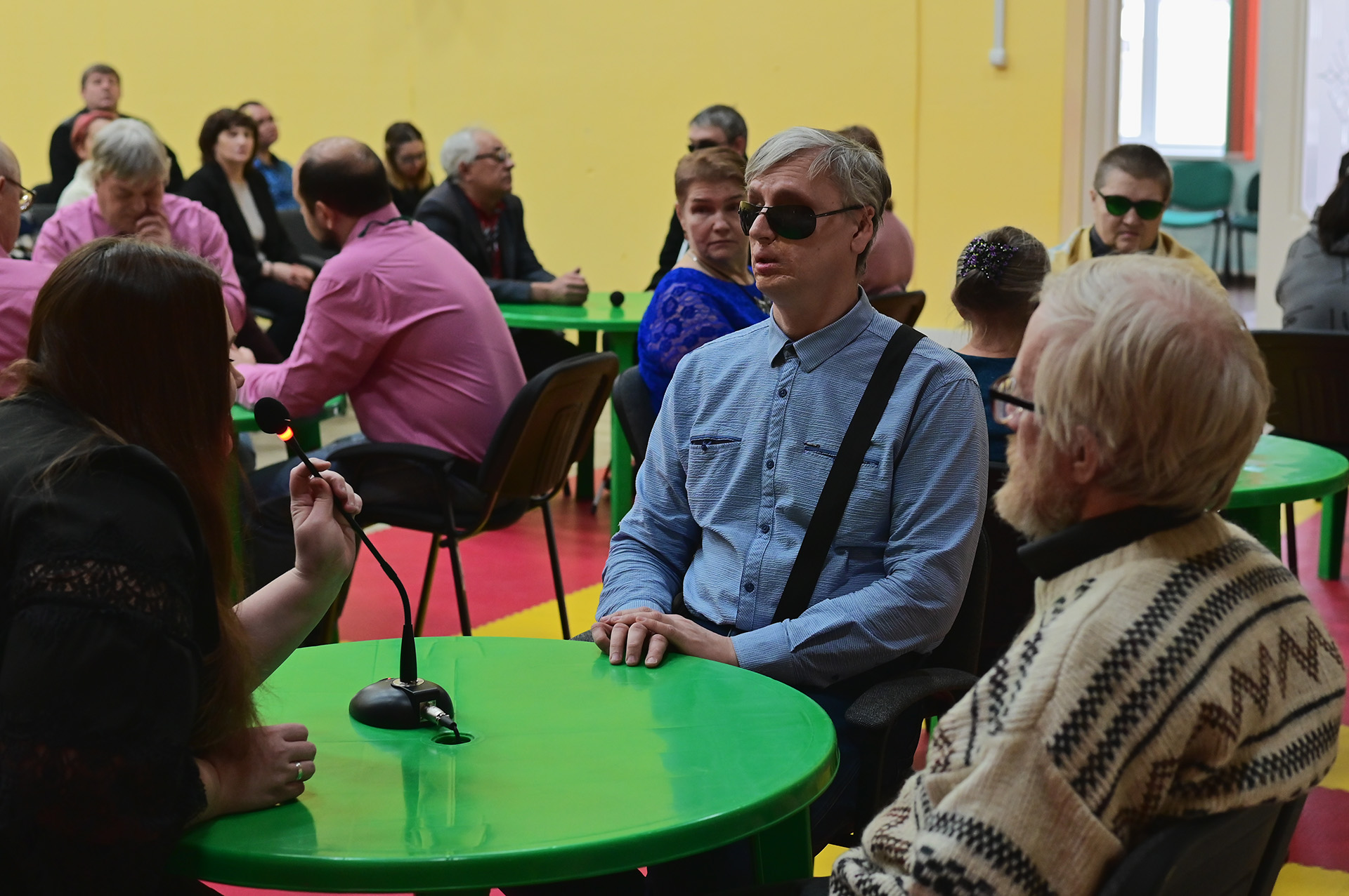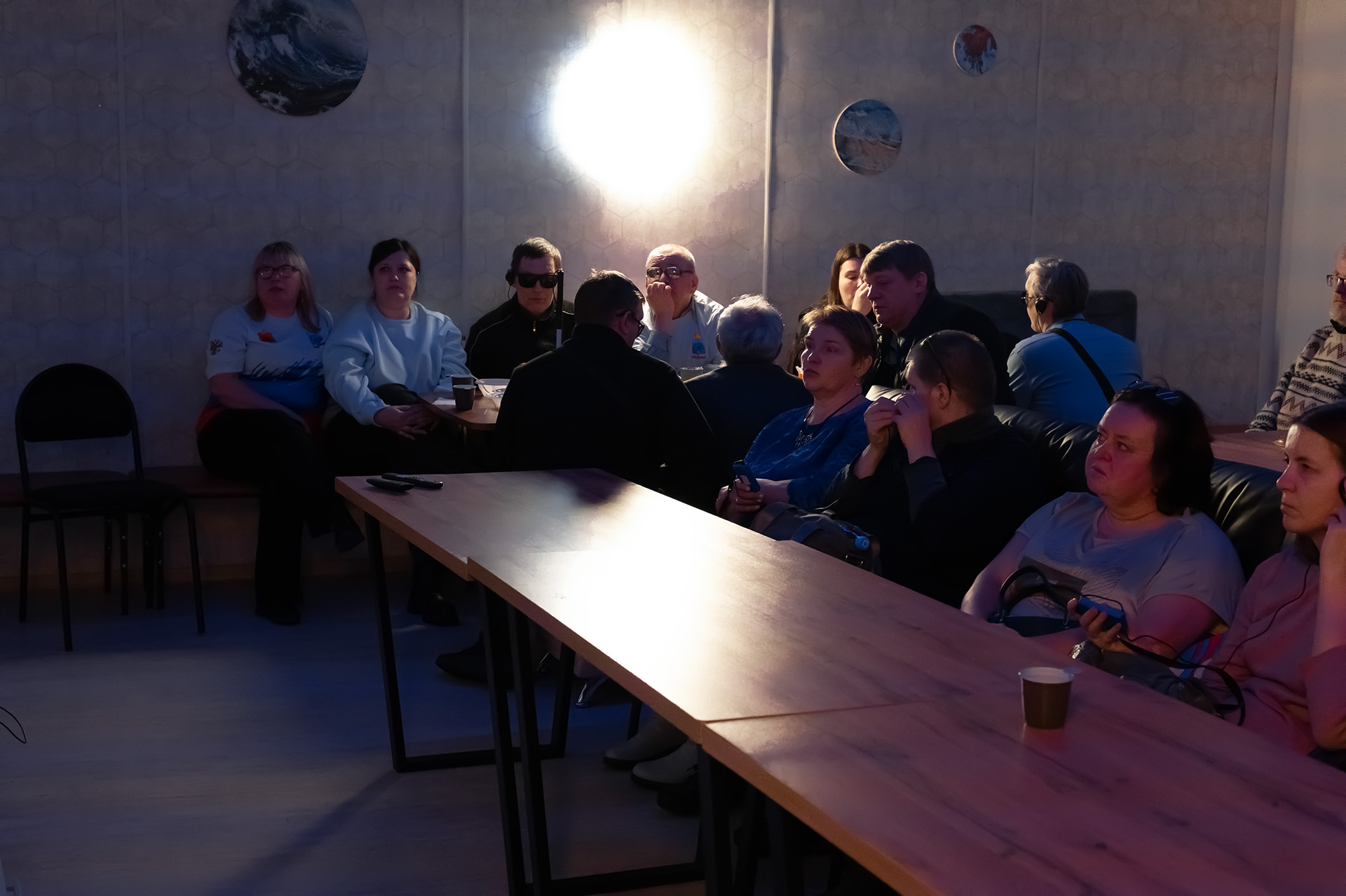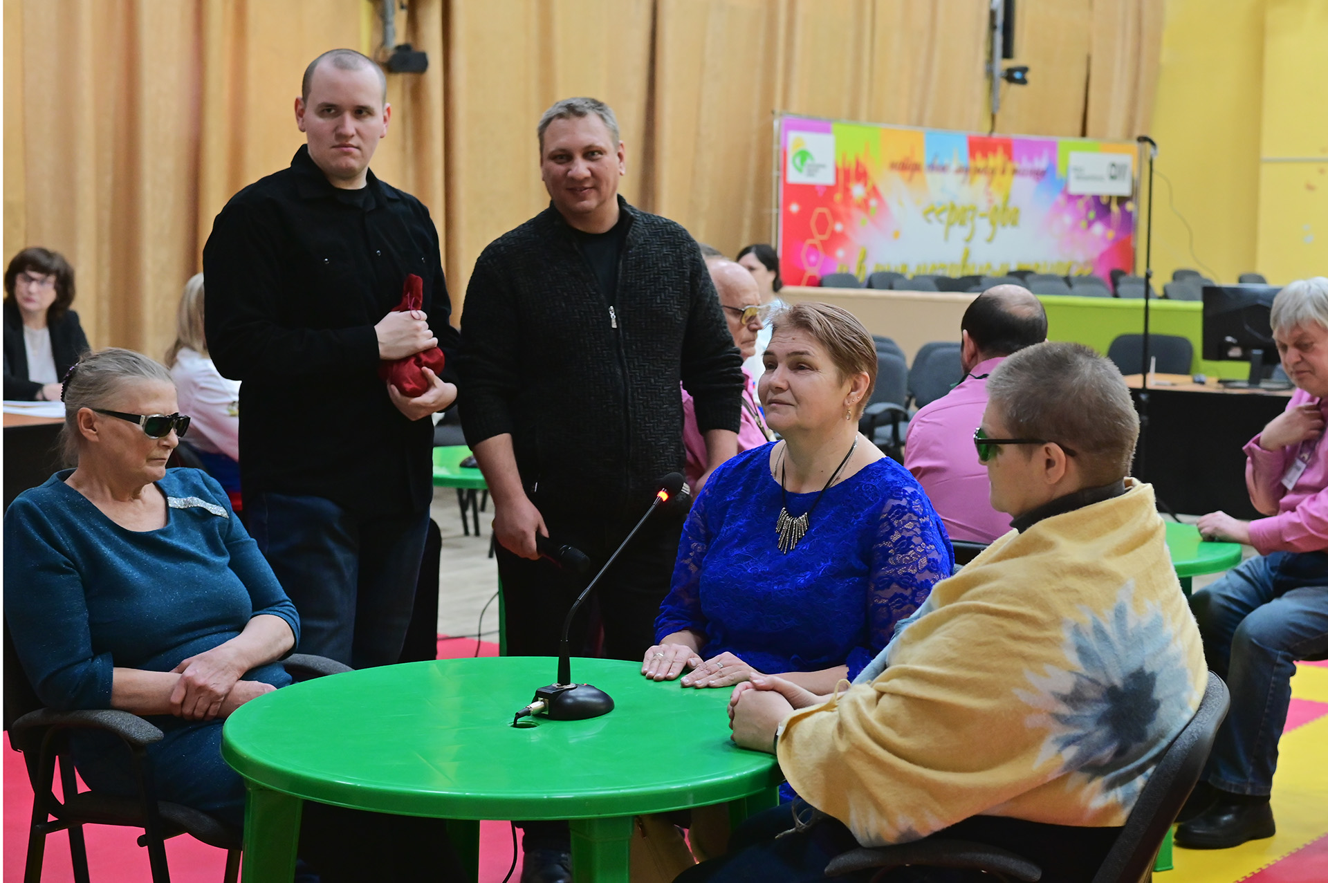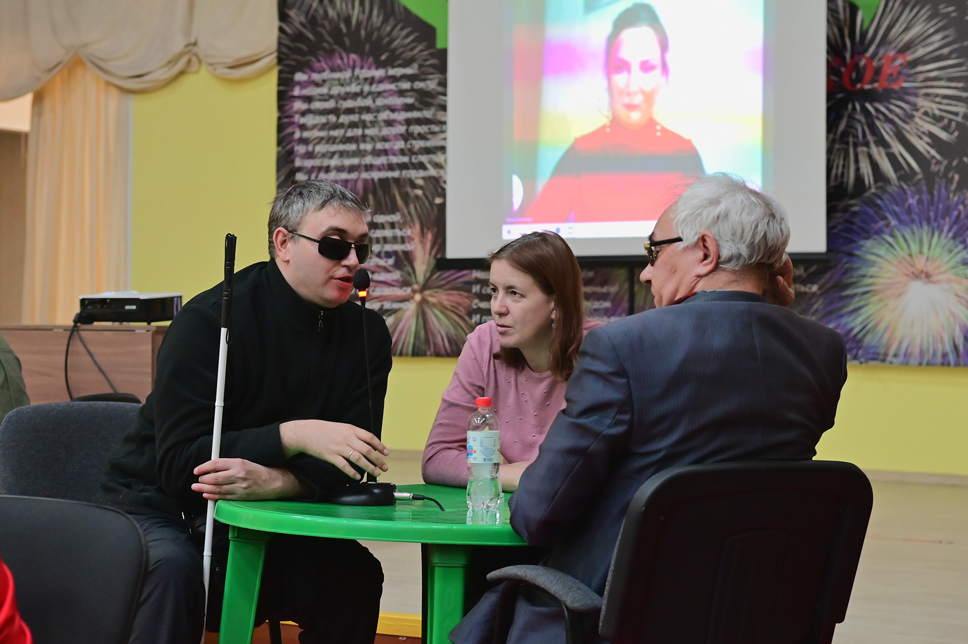 После игры в кино-кафе для членов ВОС был организован показ документального фильма, посвященного столетнему юбилею Всероссийского Общества Слепых.