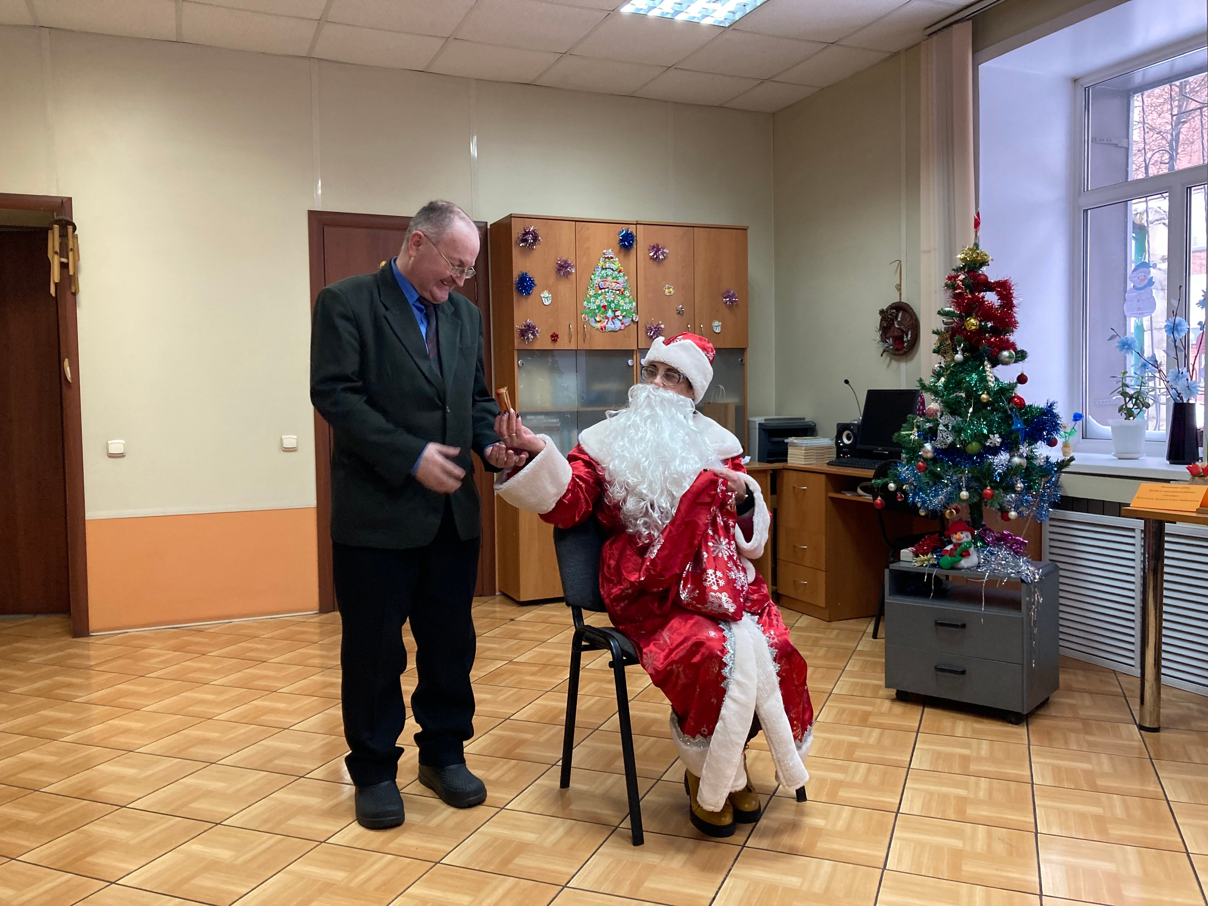После концертной программы с поздравлениями, конкурсами и наилучшими пожеланиями пришла специалист Центральной библиотеки г. Прокопьевска Грибенко Светлана Александровна. Для членов ВОС она выступала в костюме Деда Мороза, провела смешные конкурсы. Члены ВОС зачитали стихи, спели песни и получили сладкие подарки. На такой приятной ноте завершились мероприятия в Прокопьевской МО ВОС в 2022 году. Год запомнится нам приятными концертными программами, яркими эмоциями от выступлений детских коллективов города, выездными экскурсиями и простым, но очень важным, общением, которого так порой не хватает.