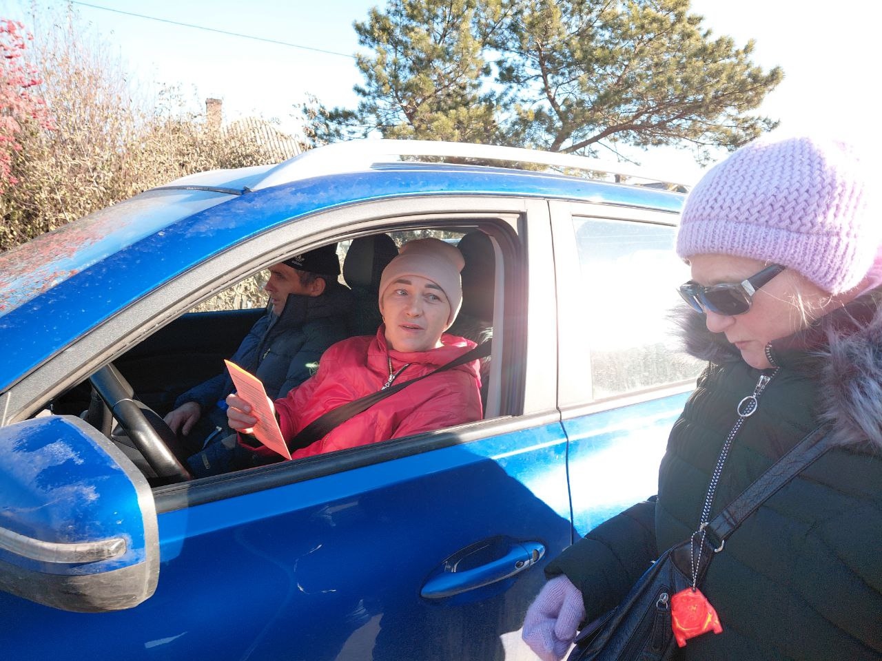 Татьяна Васильевна Зорина председатель МКРК раздавала листовки водителям с призывом: «Увидел белую трость — остановись, пропусти, помоги!».