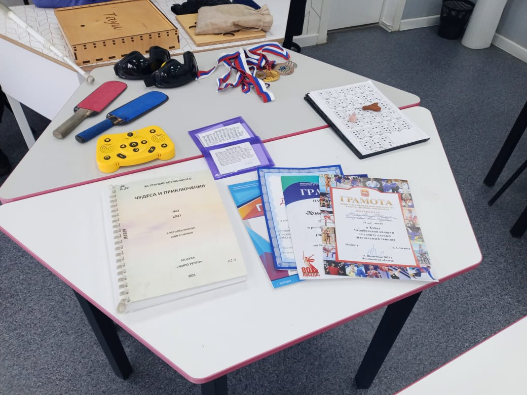 Цель занятия состояла в том, чтобы рассказать ребятам о жизни человека с нарушением зрения, а также познакомить их с организацией ВОС, нашими интересами и стремлениями. Большой интерес вызвали адаптивные игры Квикса и Таю, с которыми мы познакомили ребят. И, конечно же, мы не могли пройти мимо всеми нами любимого настольного тенниса. На мультимедийном экране ребятам был показан фильм о настольном теннисе для незрячих и слабовидящих людей. Светлана Ненилова познакомила детей с историей создания этой замечательной игры, рассказала об особенностях инвентаря и принятых правилах игры. Владимир пригласил всех заинтересовавшихся ребят в гости в нашу организацию, чтобы на практике попробовать свои силы. Данная встреча прошла в рамках мероприятий ко Дню Белой трости и Международного Дня слепых.